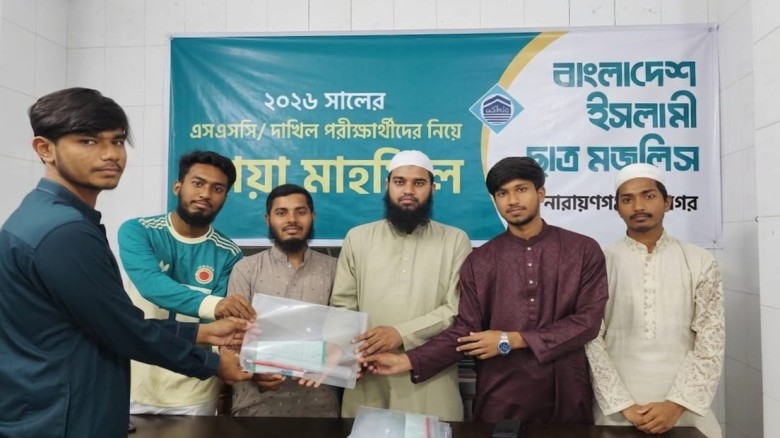 বাংলাদেশ ইসলামী ছাত্র মজলিস নারায়ণগঞ্জ মহানগরীর উদ্যোগে ২০২৬ সালের এসএসসি, দাখিল ও সমমান পরীক্ষার্থীদের নিয়ে এক দোয়া মাহফিল ও পরীক্ষা সামগ্রী বিতরণ অনুষ্ঠান সম্পন্ন হয়েছে।